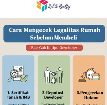 Pelajari cara cek legalitas rumah sebelum membeli agar terhindar dari penipuan. Rubik Realty bagikan panduan lengkap dan tips praktis untuk memastikan rumah impianmu aman dan sah secara hukum.